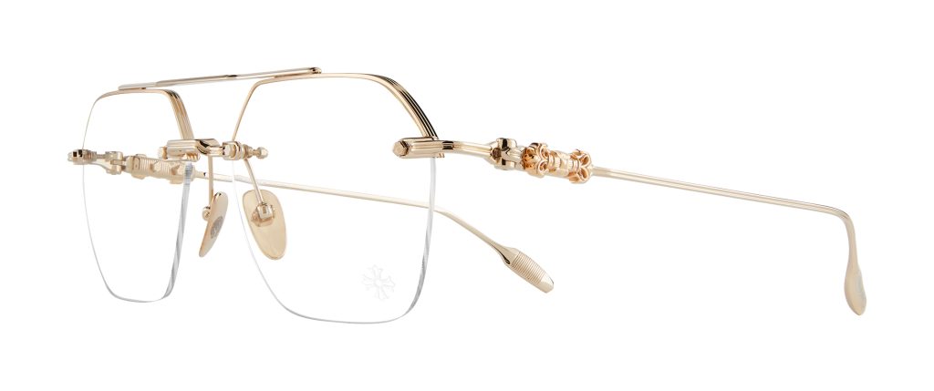 CHROME HEARTS始终致力于突破奢华界限,将其备受追棒的22K金珠宝工艺延伸至眼镜领域,彰显匠心工艺与精致美学。同时庆祝CHROME HEARTS 与溥仪眼镜之间长久而深厚的合作关系,展现双方对卓越品质、创新精神与永恒优雅上的共同追求。