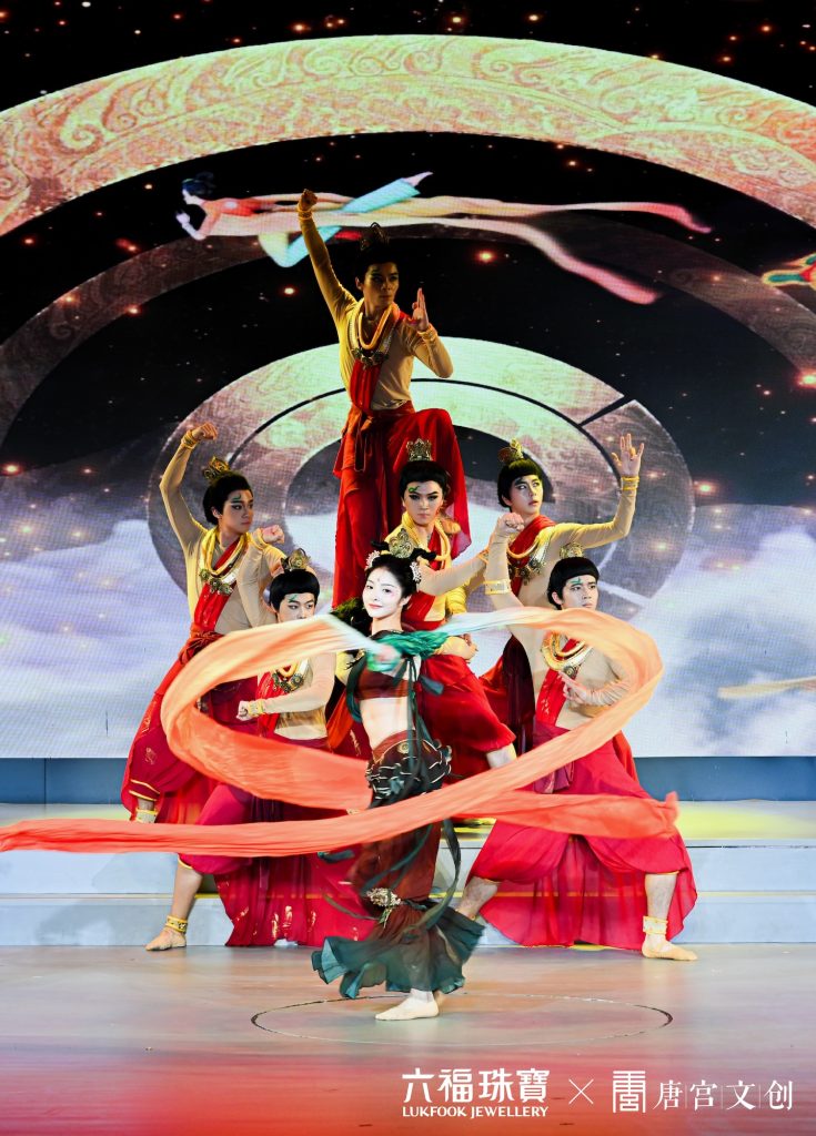 《唐宫夜宴》作为荣获“年度国家IP”殊荣的国家重点文化项目,始终致力于以当代语言重构唐风审美,发布会以一场精心全新编排的《唐宫夜宴》舞蹈揭开序幕,舞者身着复原唐制服饰、面绘唐妆,以灵动舞姿再现大唐宫廷乐宴的雍容华丽。