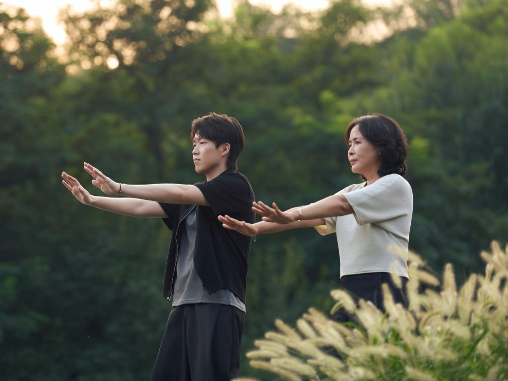 闲适与亲昵;乒乓球台边,曾经教他握拍的父亲,如今角色互换,仿佛一场守护与被守护的传承交接;他又跟着母亲打起太极,生疏却认真的招式,换来她眼底藏不住的笑意……