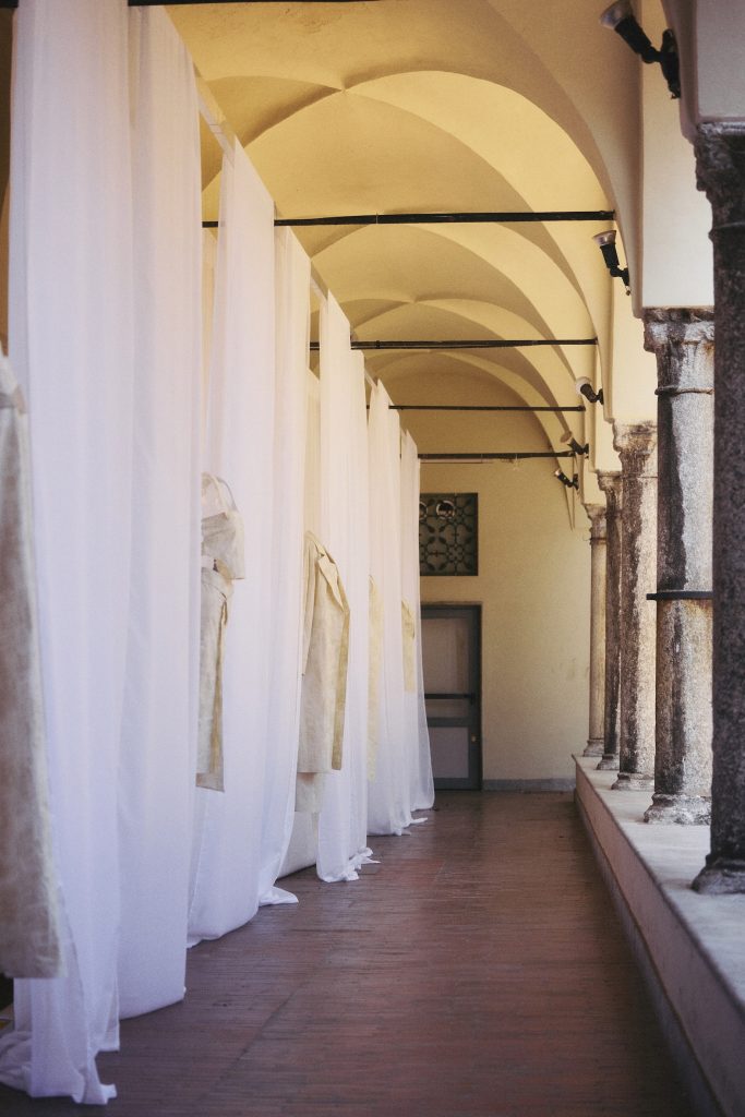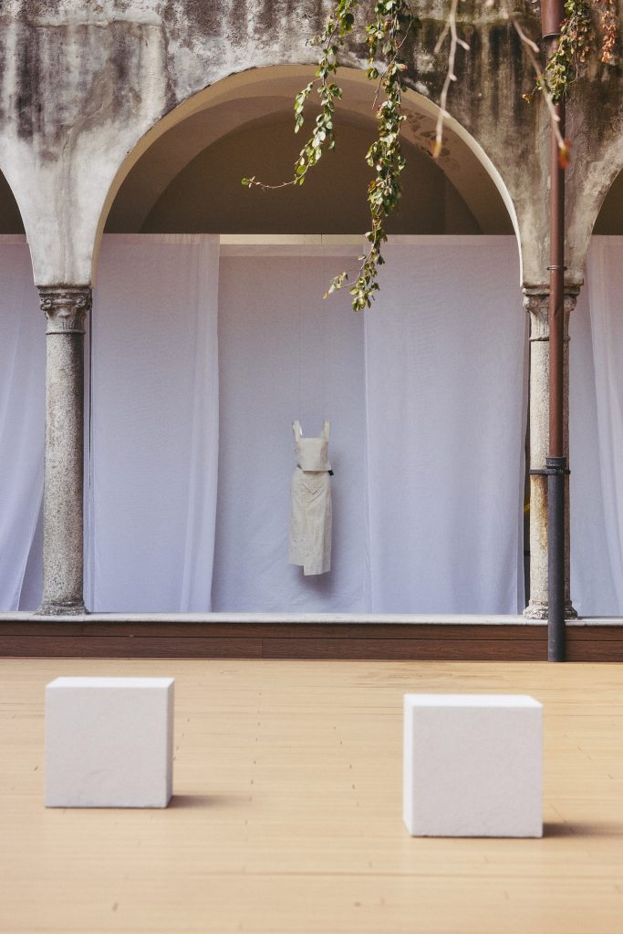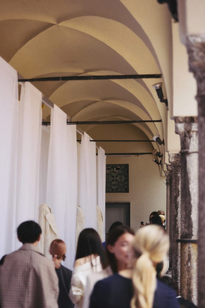 ]]>为致敬深刻滋养品牌的意大利文化底蕴,ZONA20 MILANO 2026春夏系列新品发布选址于米兰历史地标——Chiostro dei Pesci。这座源自15世纪的修道院建筑,静穆如初,为当代时尚注入文艺复兴的沉思气息。昔日的信仰圣所,如今被重塑为向内凝视的媒介,引领一段自我发现的旅程。现场以白色织物悬垂装饰,呼应本系列核心色彩——白色既是一种抚慰,亦隐喻身份的多重可能。每一套造型皆隐于独立帘幕之后,依次呈现,引导观者深入探寻与反思。竖琴音乐家的演奏作为空间叙事的一部分,琴音萦绕回廊,编织出服装,空间与内心寂静之间的无形连结,使每一步皆成冥想,每一揭幕皆为顿悟。在这悬浮之境,服装化为语言的载体,于身份认知、记忆与蜕变之间,开启一场宁谧的低语。
