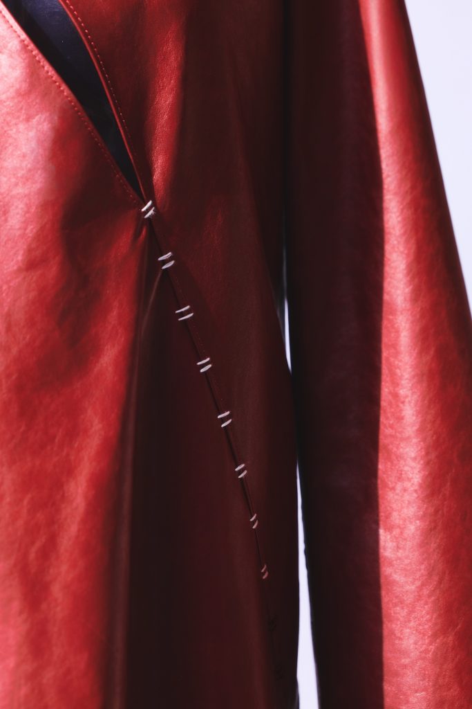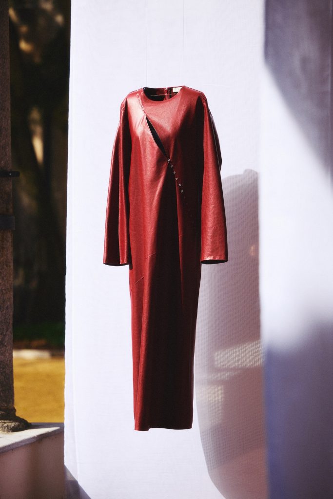 全新春夏系列的完整色谱,犹如一场深入记忆秘境的感官旅程。白色作为基调,引导观者沉入深彻内省,开启静谧的情感涤荡;色彩随之层层铺展:沙米色细腻纤柔,宛若记忆初现的蹒跚步履;雾蓝色徘徊于怀旧与轻盈之间;梅洛红浓郁而鲜活,似蓦然迸发的生命冲动;星际黑则喻示初醒的觉察,与源自沉思的内在力量。整个色谱以递进的节奏,摹写生命旅程的缩影——脆弱本身,亦成为力量的表达。